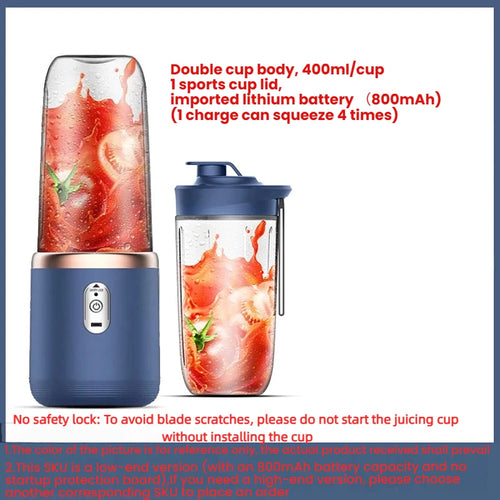 1PCS Juice Extractor Juice Cup Portable Rechargeable Small Juice Cup Home and Outdoor Multifunctional Juice Mixing 2Cups